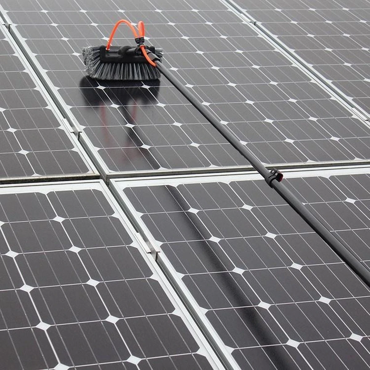 Bij deze set wordt een 5-vlakkenborstel geleverd die ideaal is voor de grondigere klusjes. Dankzij de gevlokte, hittebestendige haren is deze borstel onder meer geschikt voor zonnepanelen, ramen, boeidelen en overkappingen. De extra haren aan de zijkant van de borstel fungeren als een buffer, zodat je perfect in alle hoekjes kan poetsen zonder bv. de raamlijsten te beschadigen.