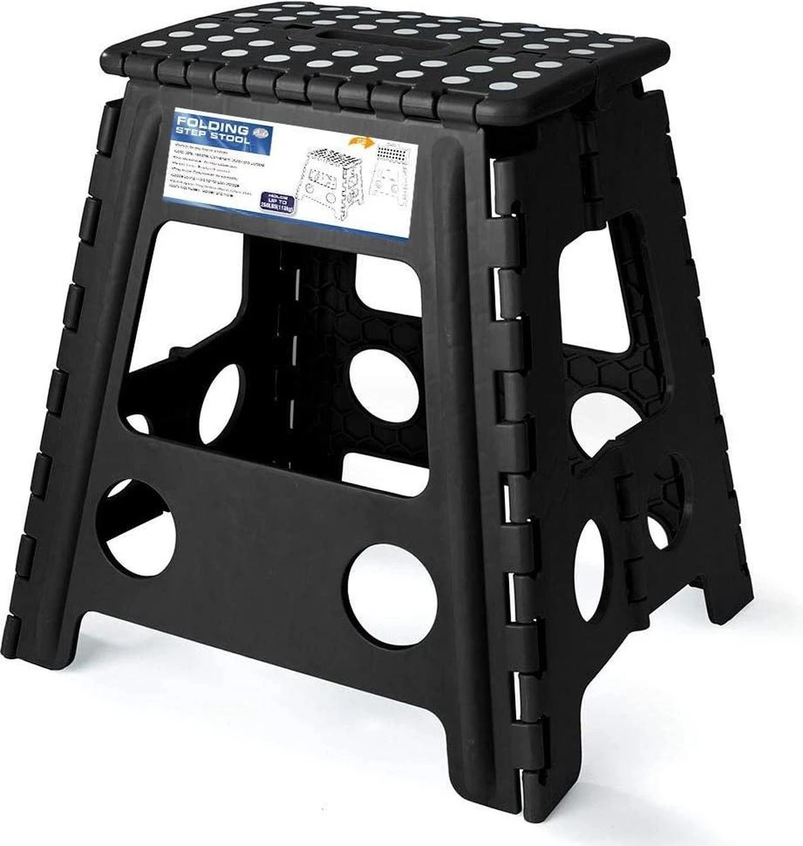 Door de soepele scharnieren kunt u de opstapkruk gemakkelijk openvouwen en weer invouwen.