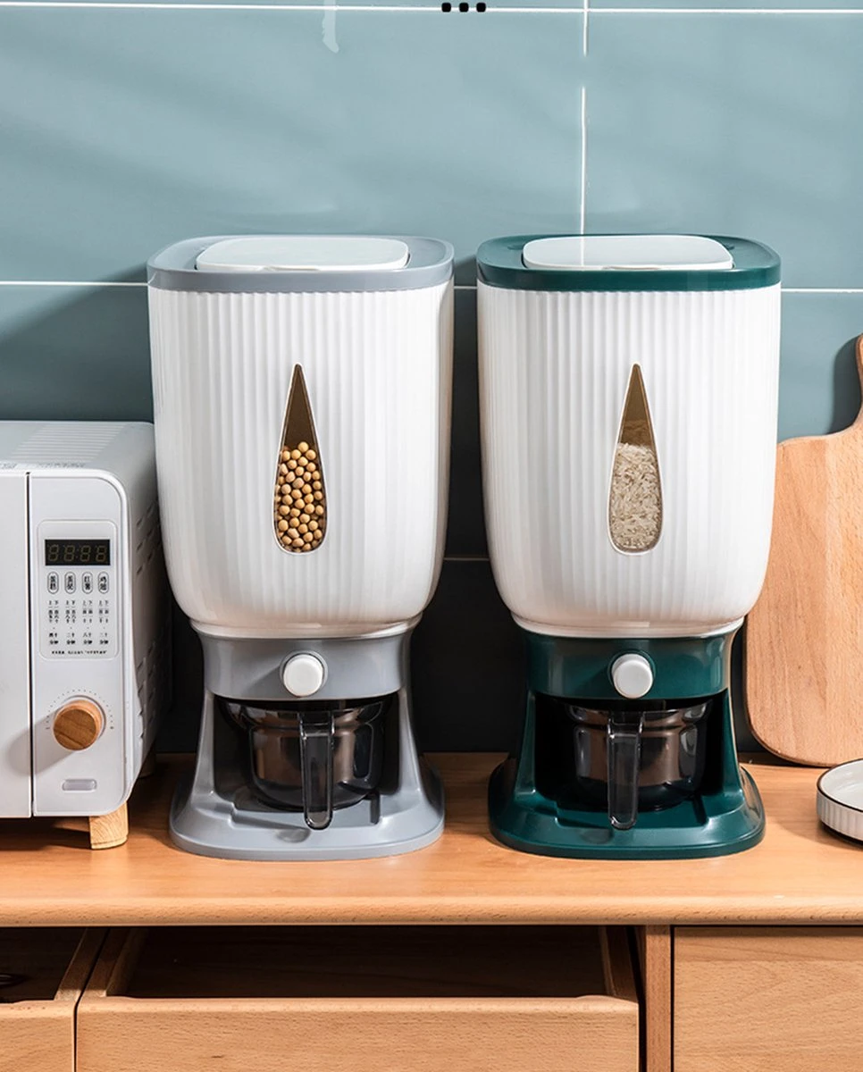 Deluqse Rijst Dispenser – Rijst Container – Grijs – Voedsel Dispenser – Rijst Opbergdoos – Rijst Bewaren – Rijst Opberg Container
