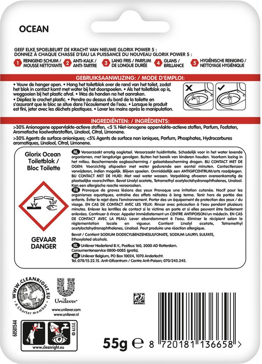 Glorix Power 5 Toiletblokken – Ocean – 9 Stuks – Halfjaarbox – Voordeelverpakking