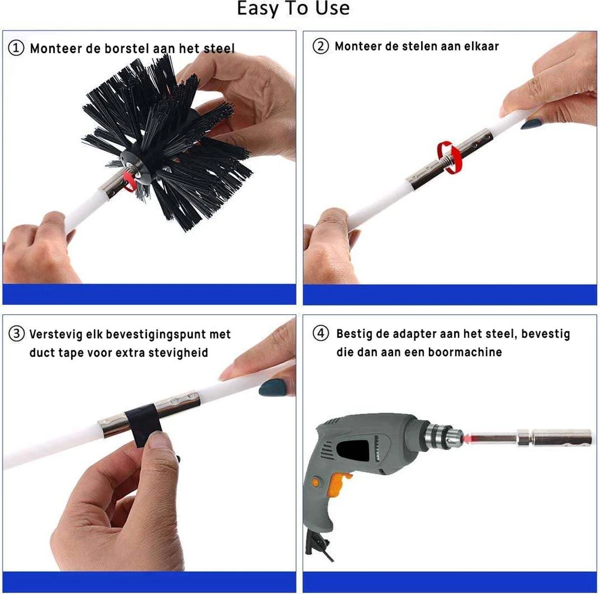 Kibani Schoorsteenborstel 7 Meter – Schoorsteenreiniger – Schoorsteenveger – Schoorsteenveegset – Schoorsteen Borstel – Veegkit – Borstelset Voor Boormachine – Boormachine