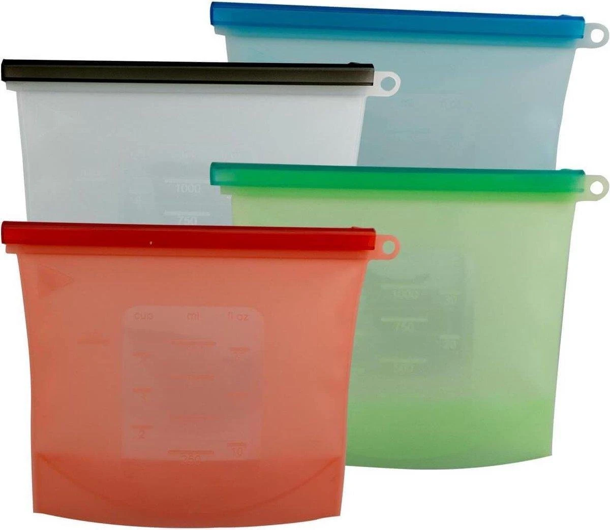 LOUZR Siliconen Vershoudzakken - Set 4-Stuks - 1000ml - Herbruikbaar -Huishoudelijke Benodigdheden Winkel 1200x993