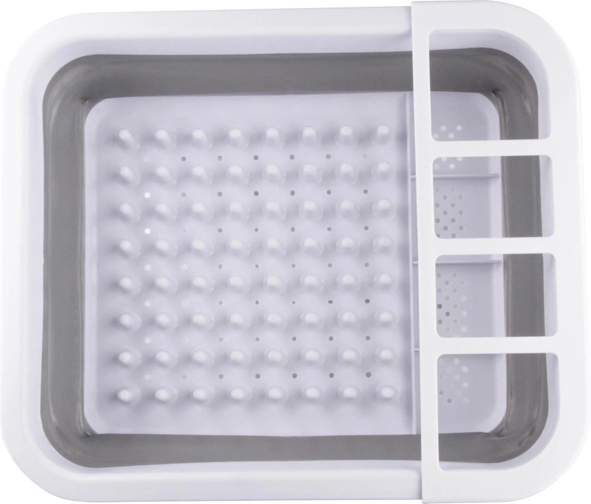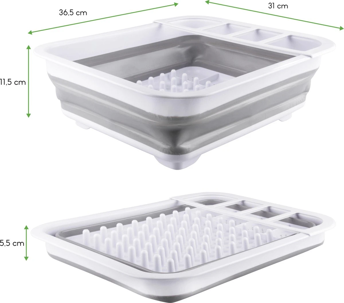 Is je afwas droog? Dan is dit afdruiprek gemakkelijk op te vouwen en op te bergen. Wat eerst een ruime bak voor al je keukengerei was, wordt makkelijk opgevouwen tot een ruimtebesparende plaat. Met gemak op te bergen in een la of in een kast. Dankzij het lichte gewicht ook handig om mee te nemen op de camping.