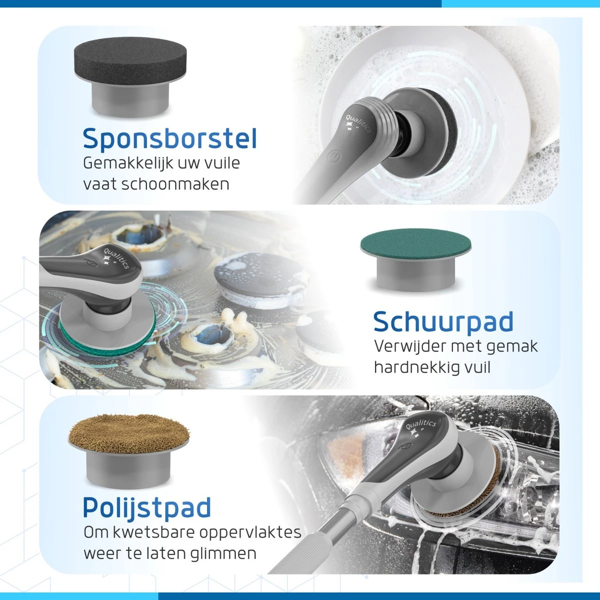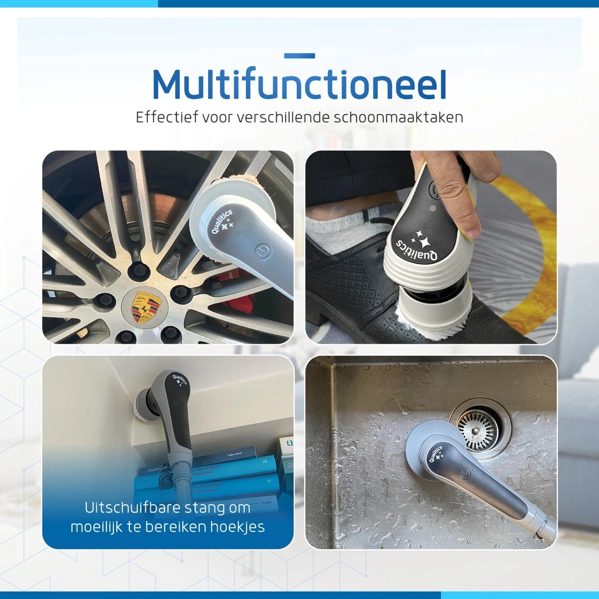 Qualitics Elektrische Schoonmaakborstel – Roterende Polijstmachine – Schrobborstel – Poetsmachine – Vloerreiniger Met 10 Opzetstukken
